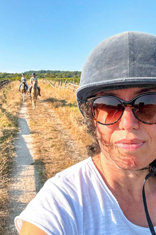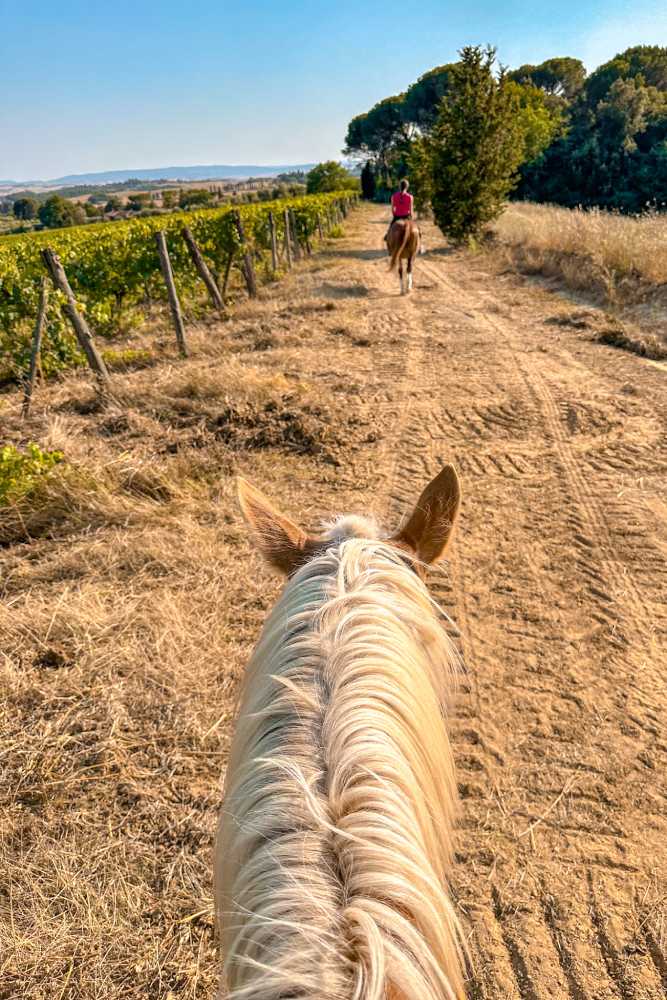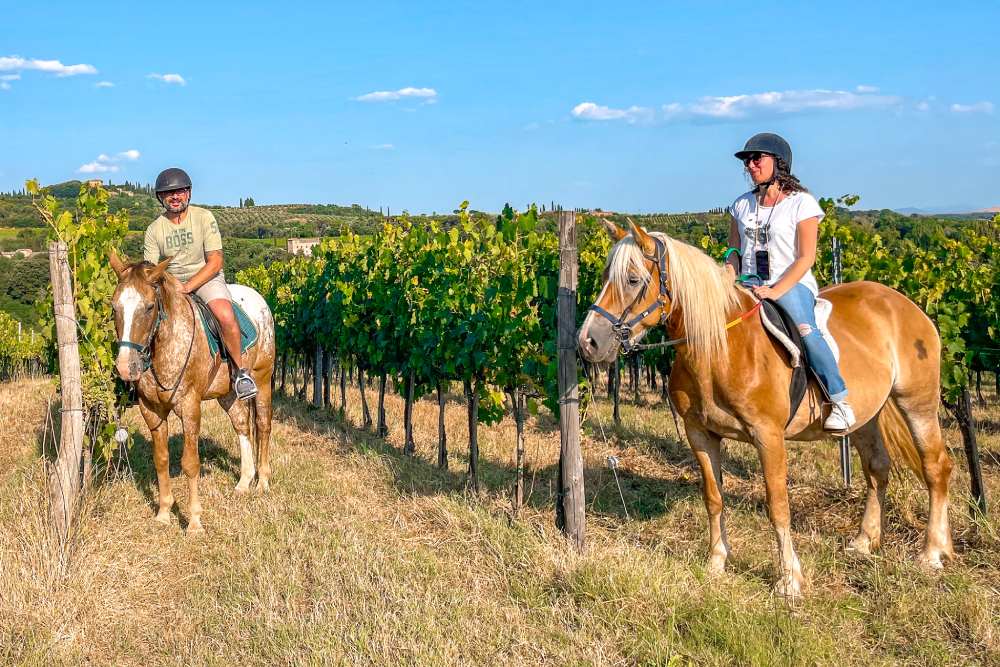 I cavalli sono molto docili e poi si esce accompagnati dalla proprietaria in tutta sicurezza. In fila indiana siamo andati a passeggio tra le colline, circondati da distese di vigneti ed in lontananza le crete senesi.