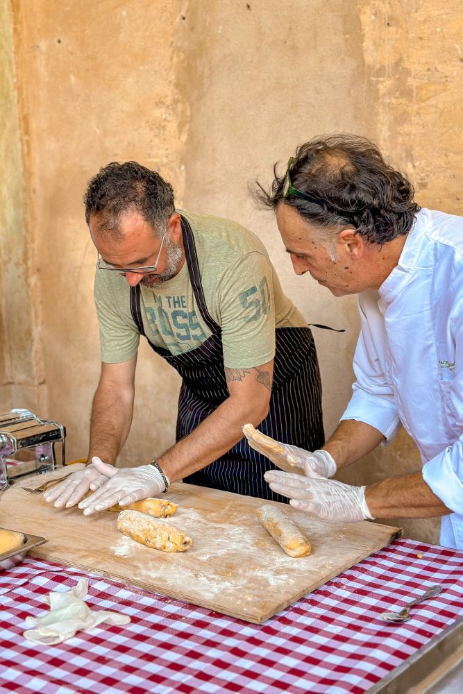 Qui in una location del tutto unica, sotto i porticati del Chiostro Principale, abbiamo imparato a preparare i cantucci toscani e la pasta fatta in casa, come i pici, poi ancora i tortelli mugellani ripieni di patate e i tortelli toscani ripieni con ricotta e spinaci.