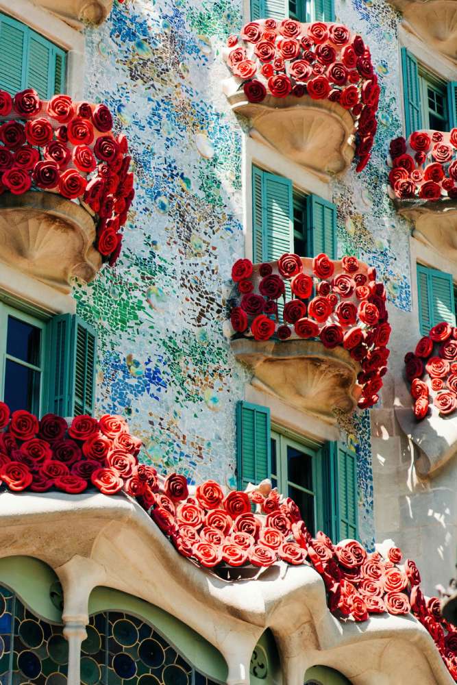Per celebrare San Jordi, Casa Batlló veste per alcuni giorni i suoi balconi di rose rosse. Senza dubbio un momento unico di immortalare la facciata della casa.